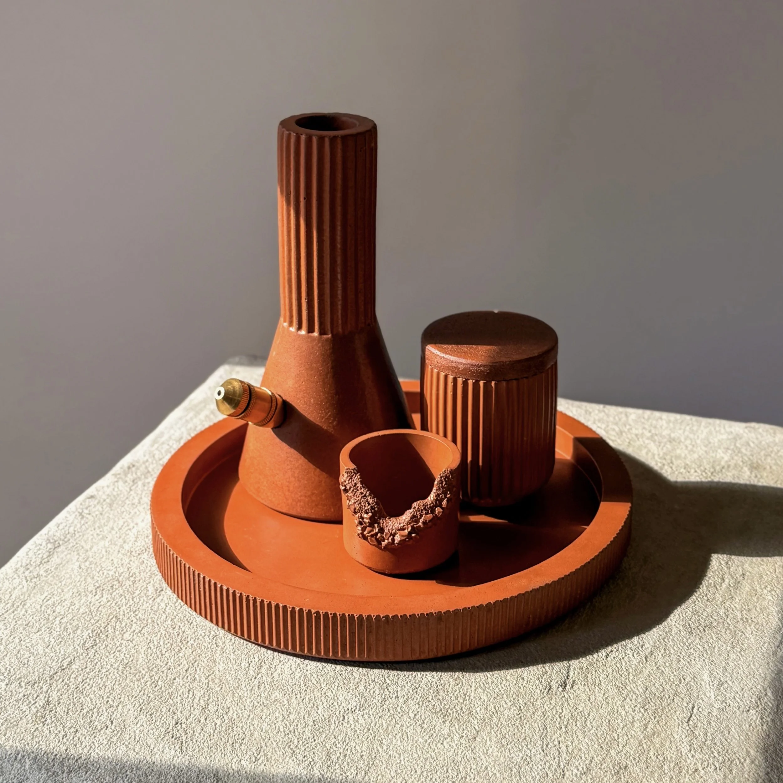 The Smokable Sculpture is a concrete smoking pipe that requires no water, featuring a detachable pocket-sized heating element that can be smoked on-the-go. Each piece is hand crafted to elevate both the smoking experience and the space it resides.